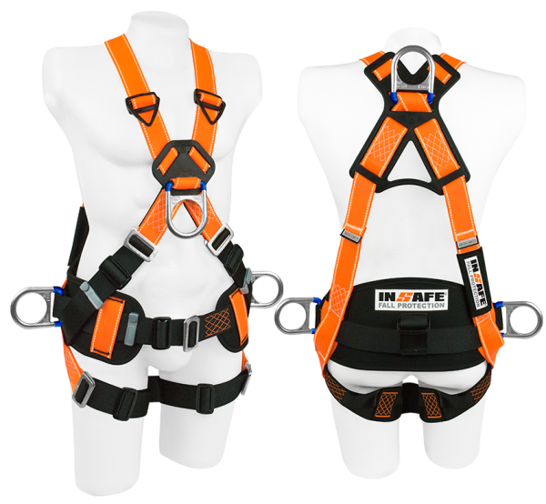 4 ARGOLLAS EN ACERO posee 1 argolla dorsal en “D” para la detención y restricción de caídas, 2 argollas laterales en “D” para posicionamiento a un punto fijo, 1 argolla frontal en “D” para ascenso y descenso controlado. SOPORTE LUMBAR CON DISEÑO ERGONÓMICO que minimiza el riesgo en las malas posturas del usuario.